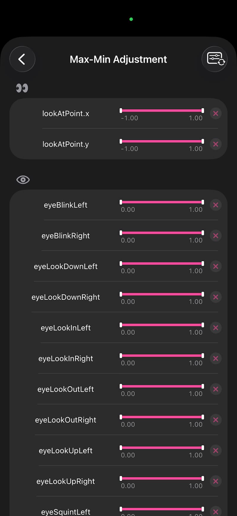 Resets the avatar's face to front based on current iPhone position. Useful when you can't place iPhone directly in front of your face.